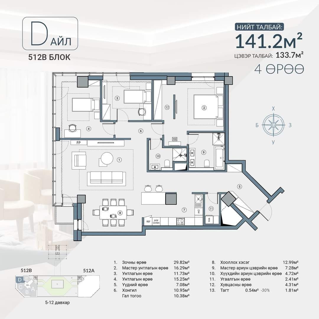 Давхарын байршил: 12
