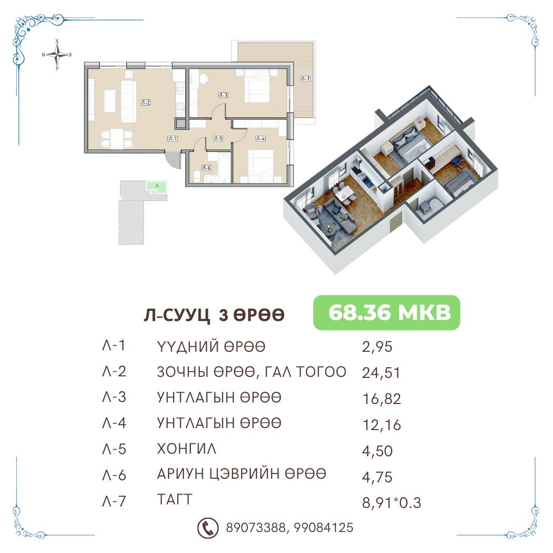 Хэмжээ: 68м2
