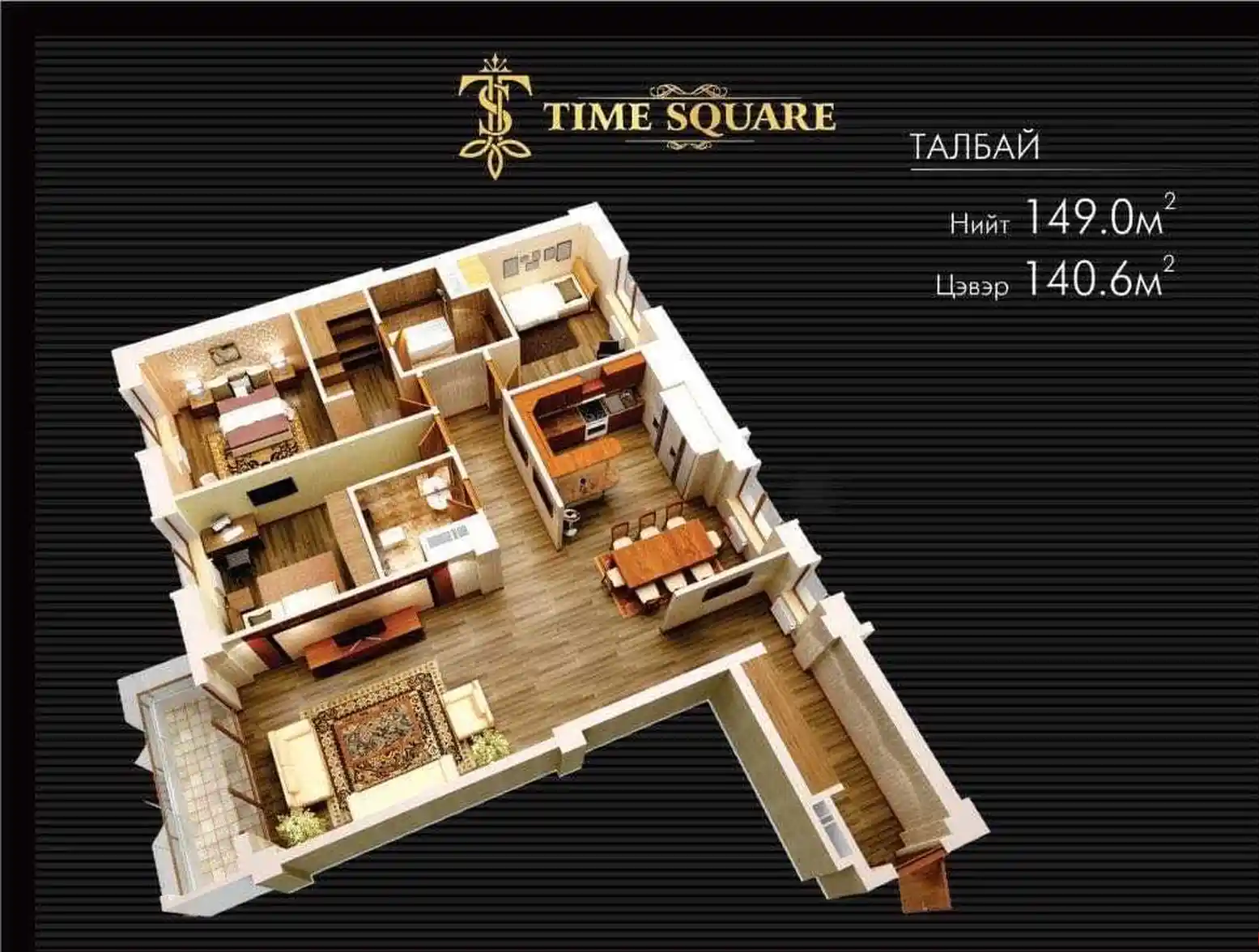 Ривер гарден хотхоны баруун талд, Тайм скуэр хотхонд 149 мкв 4 өрөө байр худалдана. Зогсоол 50 сая
